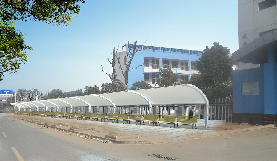 ? ? 濰坊飛翔膜結構工程有限公司膜結構候車遮陽棚的特點:車棚材料選用了進口結構建筑材料。