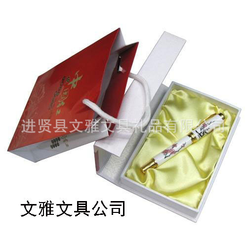文雅文具青花瓷筆、工藝筆、陶瓷筆、簽字筆、禮品筆、鋼筆 文雅文具青花瓷筆:是純陶瓷燒制的筆。分鋼筆和簽字筆,“中國風”已成為世界的一種時尚。白釉青花一火成,花從釉里透分明??蓞⒃旎忍烀?,無極由來太極生。文雅筆業遍訪國內知名的瓷窯,遵循古法,經過素燒、上釉、釉燒等10道工序,三進三出瓷窯以1200度的高溫為您燒制出世界首款陶瓷系列禮品----筆身晶瑩剔透,手感潤滑,此款筆生產的難度系數極高,因為筆身的陶瓷厚度為1.3毫米,筆身和陶瓷筆桿的誤差為0.05毫米,燒制溫度為高溫1200度,陶瓷筆管從做模,到貼花出成品時間為10道工序,出成品后經過嚴格篩選,一般要淘汰一半多不合格的,選出來的可謂百里挑一,由于市場上無此類產品,青花瓷筆的問世,將是禮品市場的大熱門。