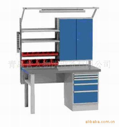 方孔、百葉掛板配合方孔掛鉤系列、零件盒、棚板使用使工作桌具備強大的功能。2,棚板配合方孔掛板使用使工作桌多增一個使用平面。3,吊抽用于一些輕小型物品存放,承重450KG。4,燈架/吊鉤/滑軌高級格柵格照明燈采用光柵結構,光線柔和、均勻,符合人體工程學光源分為白光和黃光兩種燈架。承載能力:15KG,每套滑軌還配送滑塊一件吊鉤一個5,臺虎鉗及安裝附件裝置在工作臺上,用以夾穩加工工件,為車間必備工具。鉗體可旋轉,閑置時可沿桌面軸向旋轉到桌面下。常用標準規格