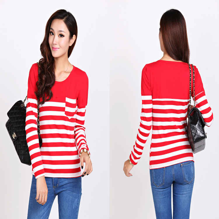 秋冬新款韓版套頭中長款條紋長袖T恤 女裝圓領長袖打底衫廠家直批
