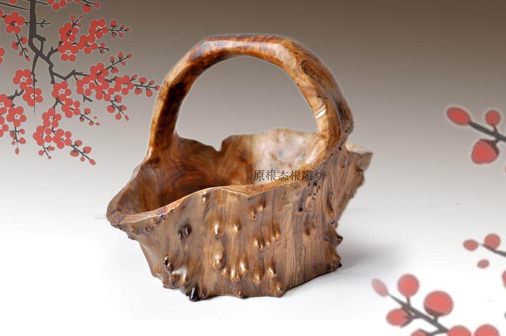 名稱:手提根雕籃、手提花籃、果籃、 木根杯洗
