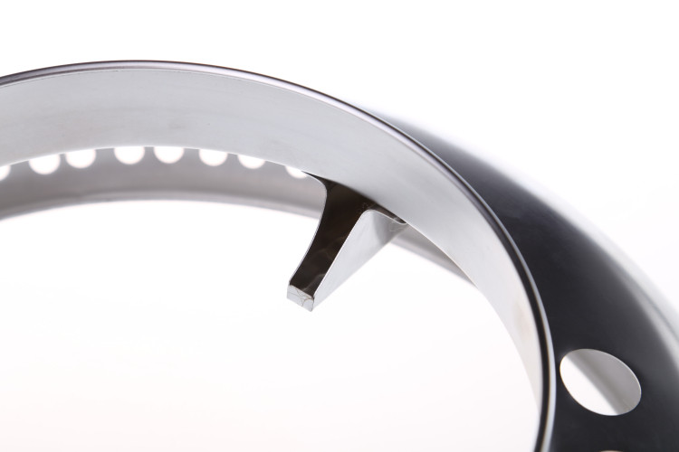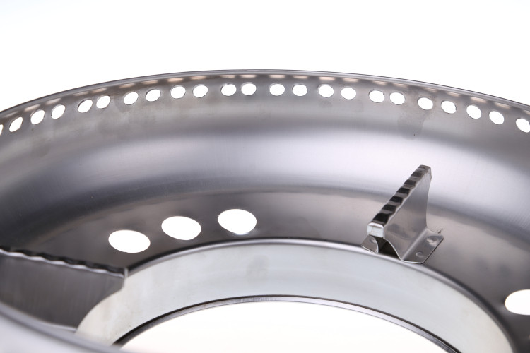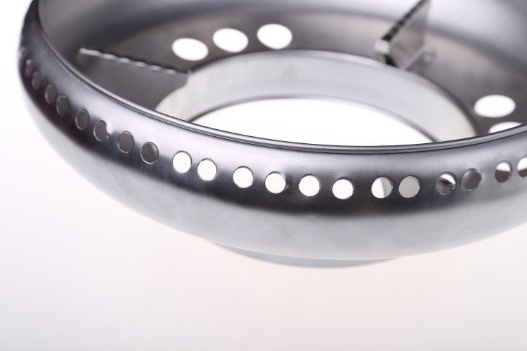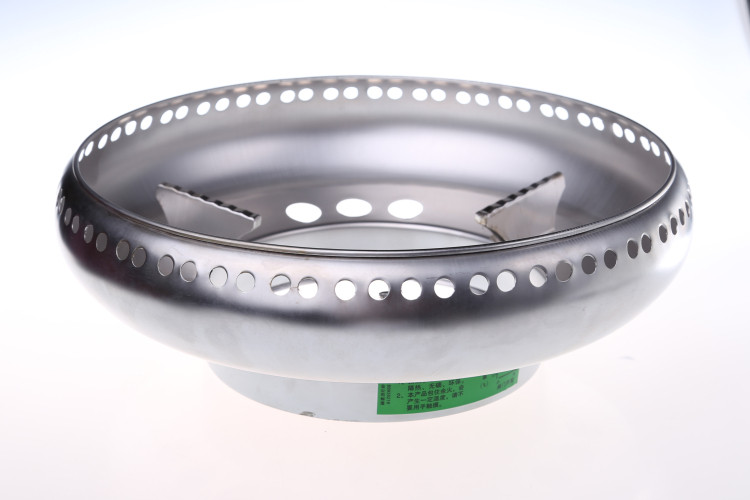 采用鼓型設計,底部有9個進氣圓孔,上端口有72個出氣圓孔,把下面每個圓孔的進氣都分成八份,從端口有出氣圓孔排除,從而產生一種煙道式進排原理的效果。