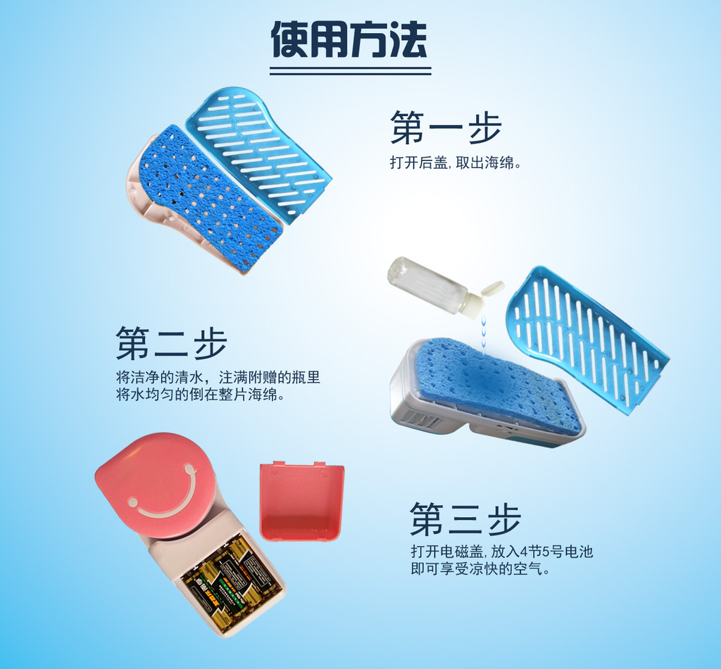 如果你需要它吹出來的冷風帶有香味的話,可以把精油滴幾滴到海綿中就OK了。當然,使用完后一定要記得放入水中浸泡清洗再晾干!