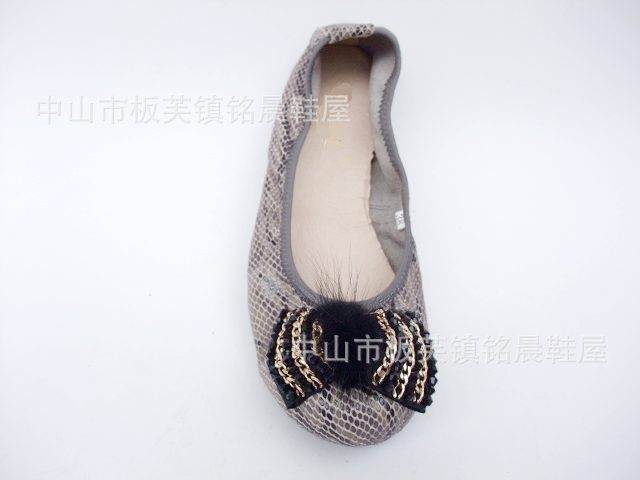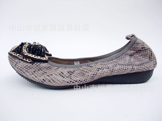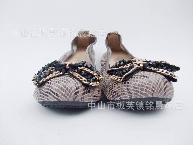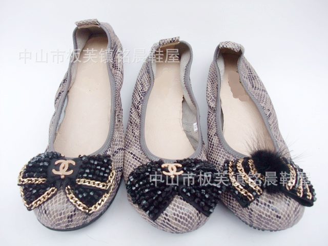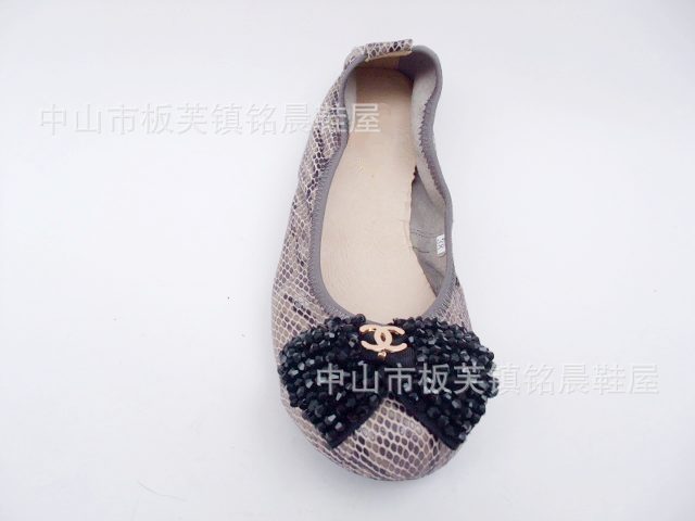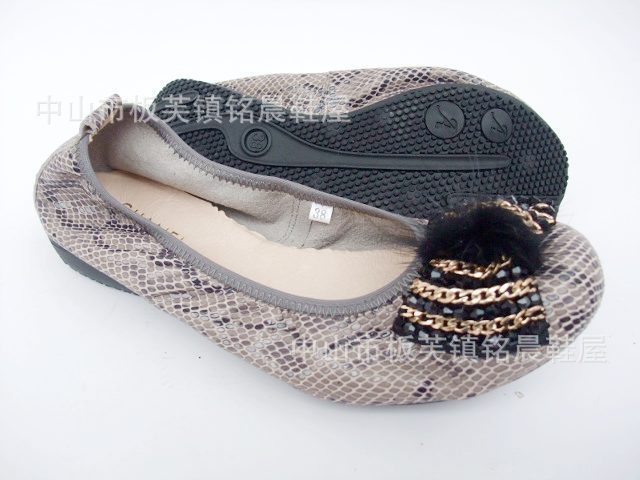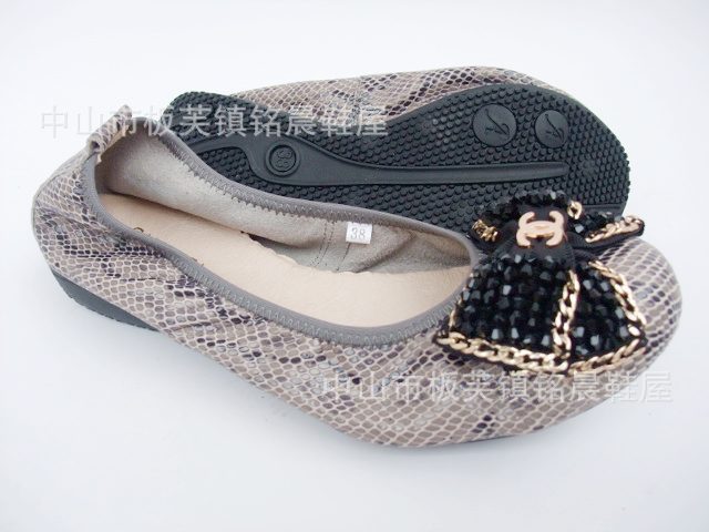 此款鞋子鞋花采用優質玻璃鉆和銅質五金鏈條,21元一尺的牛皮,很顯檔次.
