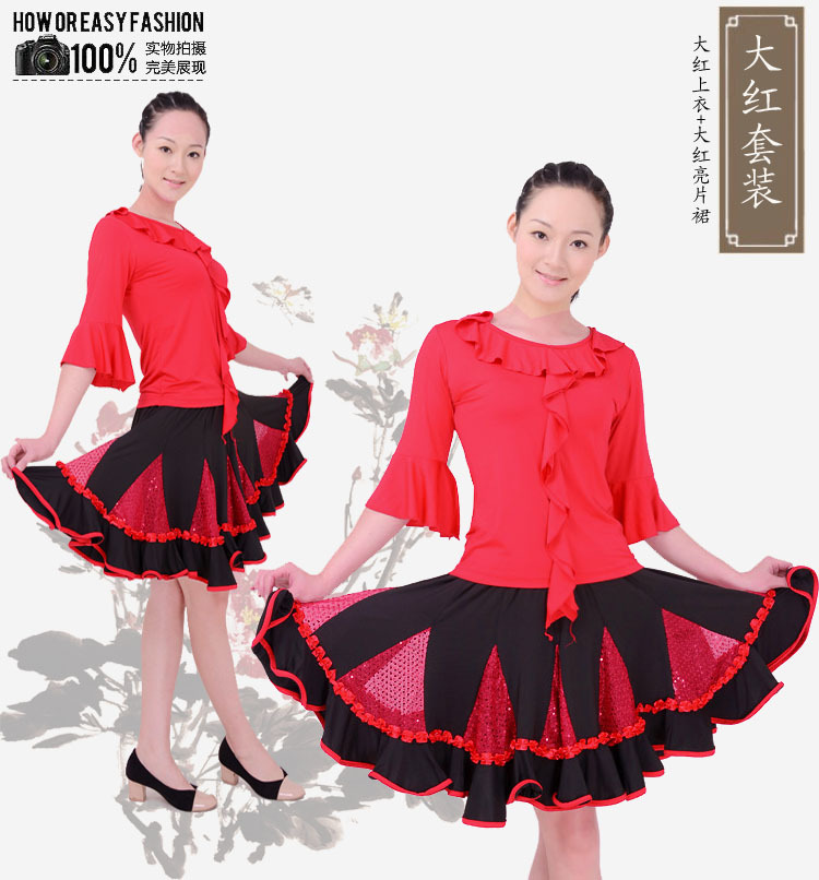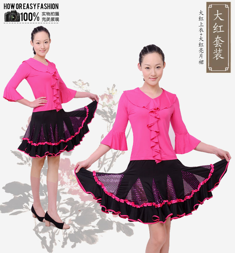 廣場舞蹈服套裝 特價大碼廣場服 工廠批發高品質正品亮片裙套裝