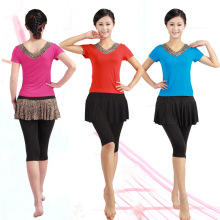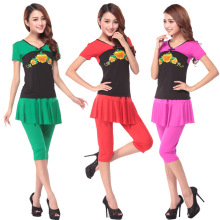 夏季新款廣場舞蹈裝短袖牡丹印花女士七分裙褲套裝演出跳舞服批發52.00