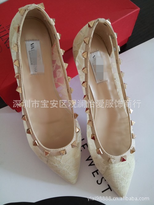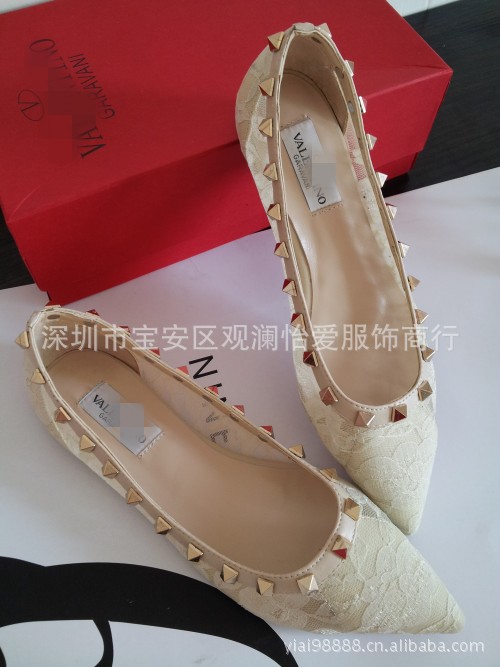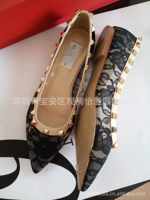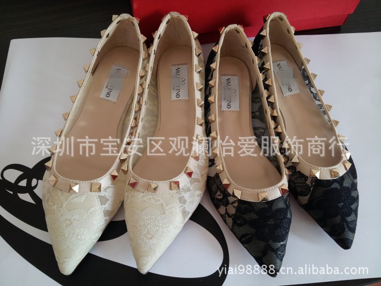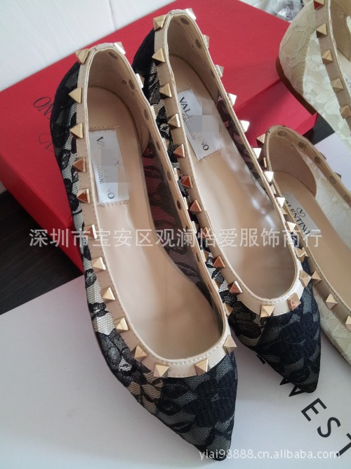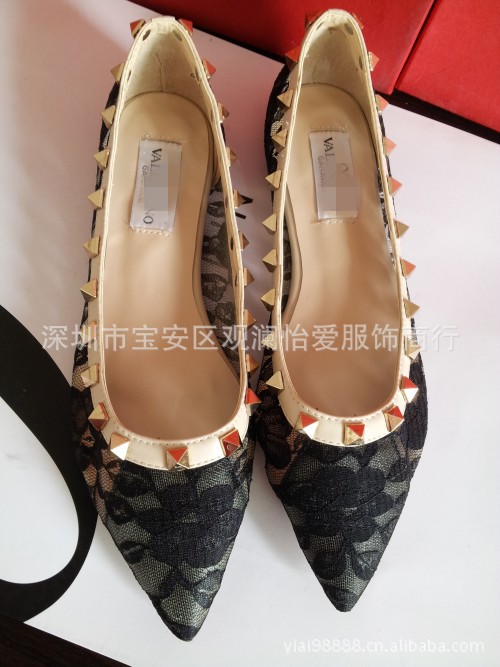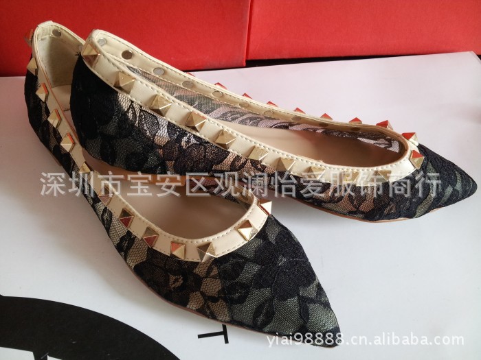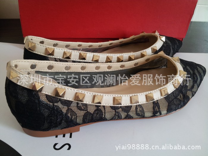 Y’A/怡生來愛 歐洲高端定制 華倫天奴鉚釘鞋 蕾絲網紗平底女單鞋