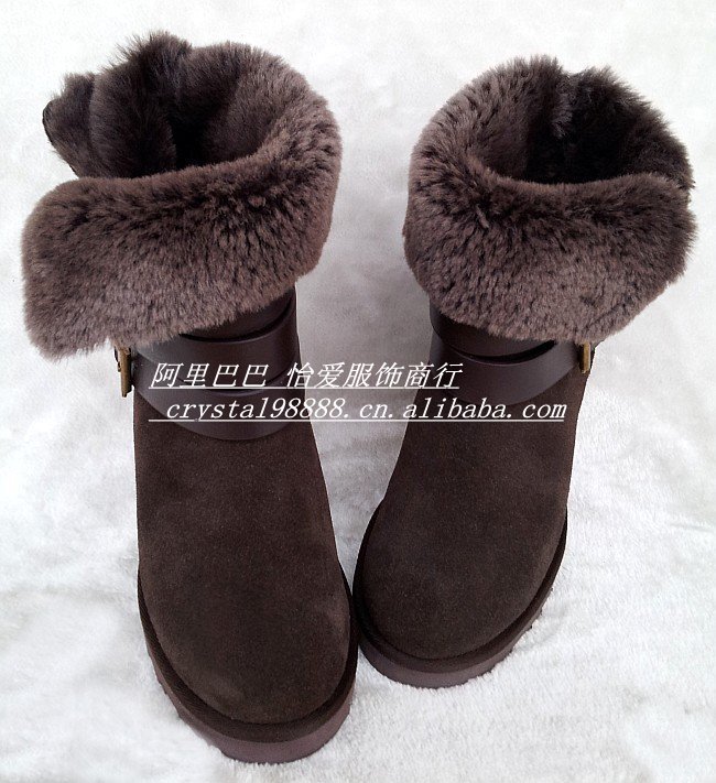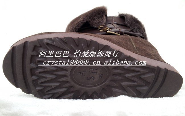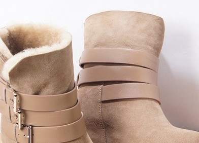 材質:腳面到腳后跟處是牛反絨,也就是磨砂牛皮!但是腳面和腳底都有羊毛的,不用擔心冬天凍著腳丫啦~靴筒處羊皮毛一體??!