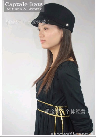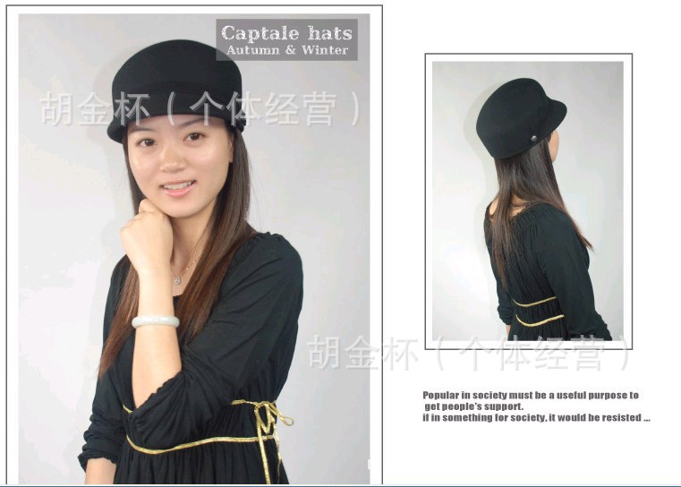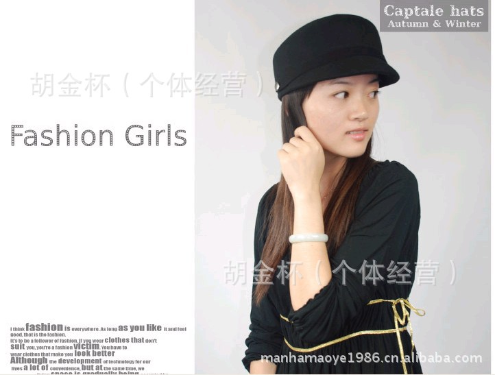 『曼哈帽業』廠家直銷高檔純羊毛女士軍帽氈帽秋冬呢帽子