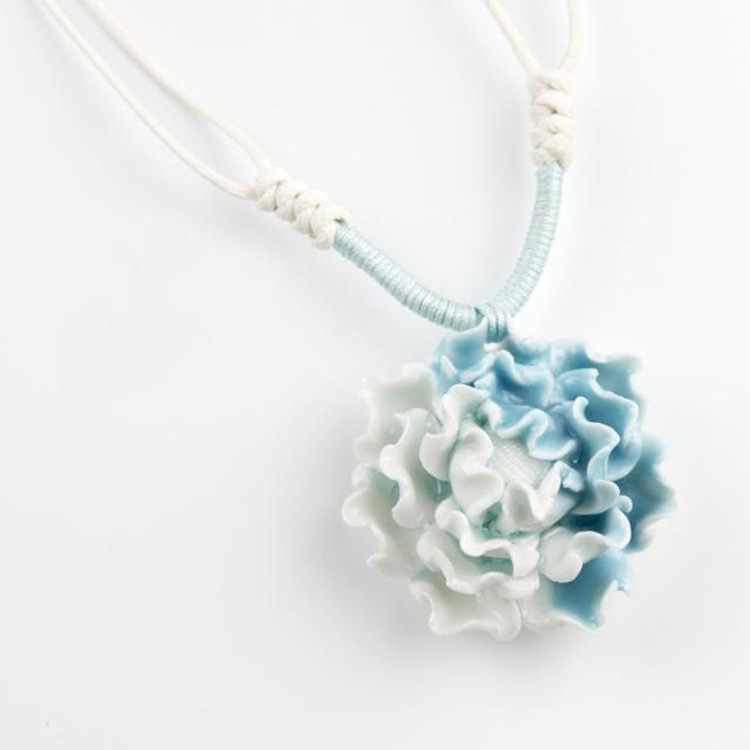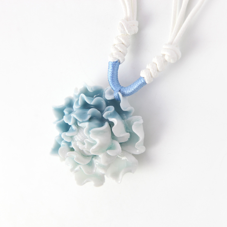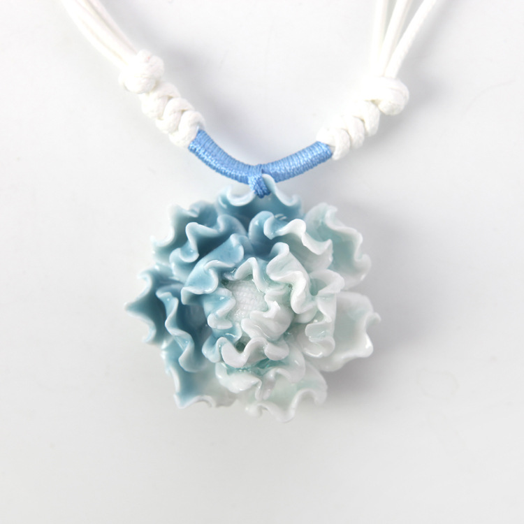 中國風陶瓷飾品批發 優雅古典 手工制作陶瓷項鏈 女生 藍白牡丹