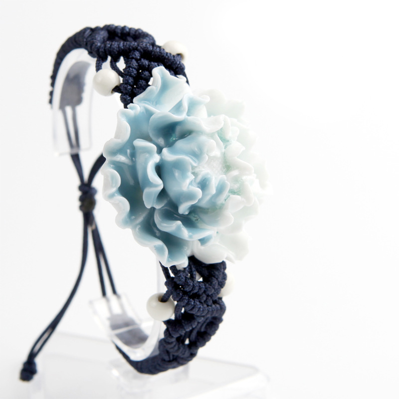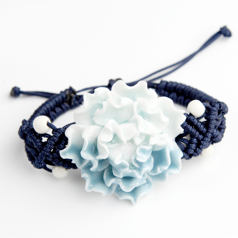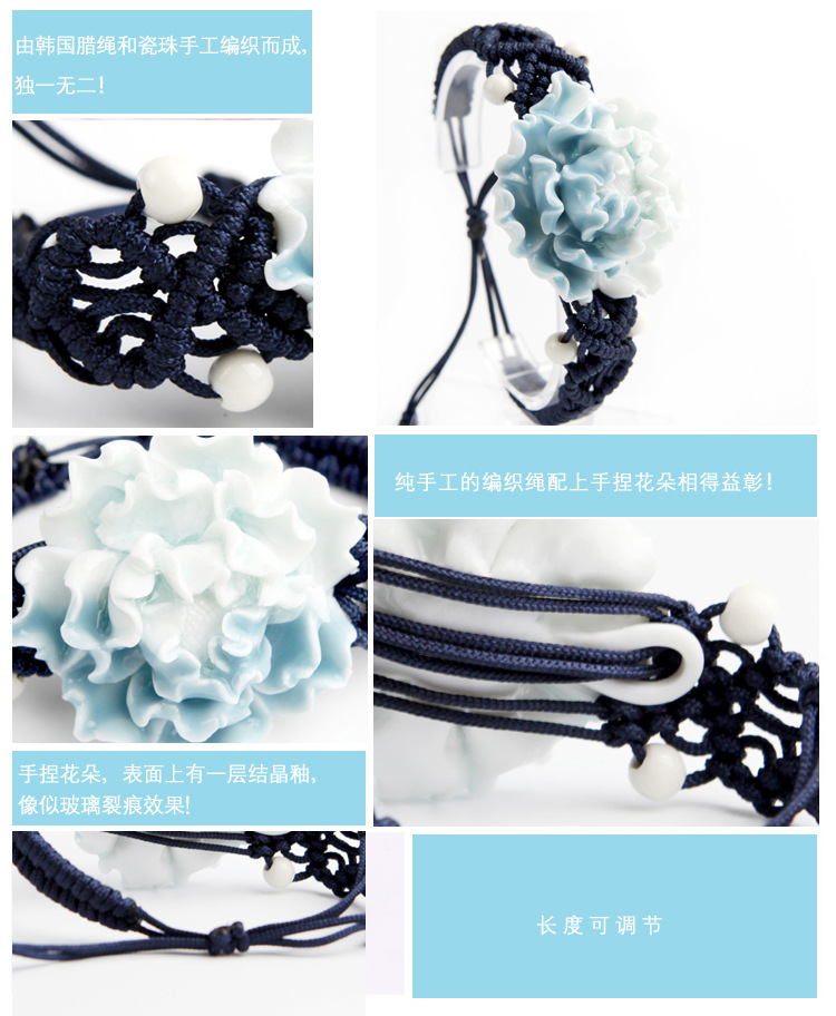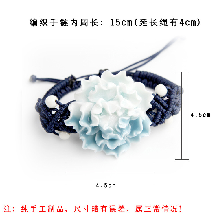 景德鎮原創陶瓷手鐲韓版多層流行飾品手工編織玫瑰花青花瓷手鏈女