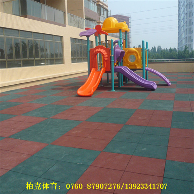 我公司生產的彩色彈性橡膠地墊是一種新型功能性地面鋪裝材料,采用無毒無污染原料經模壓熱固成型,基本規格為:500×500mm,厚度:10-50cm,顏色有紅、綠、黑、藍、灰等。因我公司選用全自動生產加工設備,減少了生產過程中的人為不穩定因素的存在,從而使產品在顏色及厚度上具有一致性,保證了用戶在視覺上的美觀,實用中的舒適。