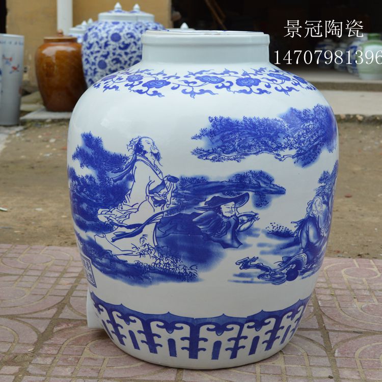 廠家批發裝青花大口人物酒壇 景德鎮陶瓷酒壇