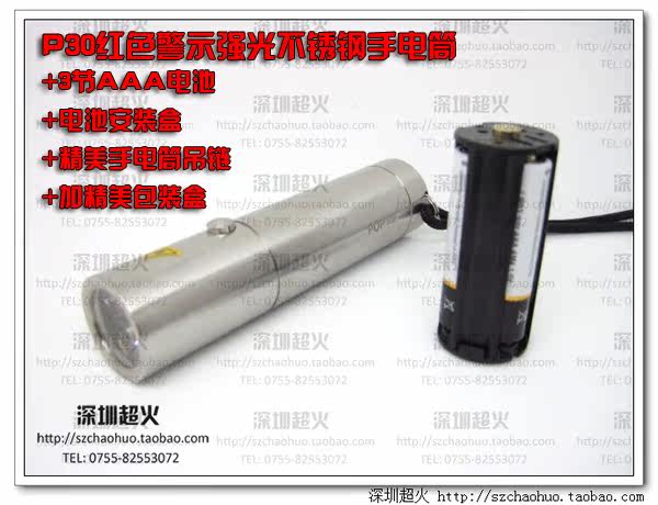 POPlite 博睞P30紅色警示強光不銹鋼手電筒