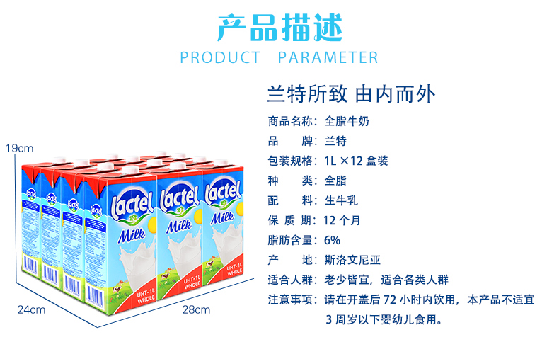 蘭特牛奶全脂牛奶1L進口牛奶烘焙咖啡原料專用乳飲料