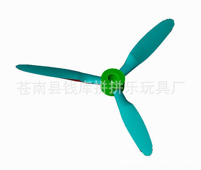 三葉螺旋槳配件搭配一個透明塑料頭套在飛機前面可以增加飛機前段的重量,從而促使飛機投擲出去時可以飛翔去天空。是泡沫飛機不可缺少的配件,形狀優美,所用材質環保無毒又可耐摔,當然也可以根據客人的需要形狀定做。如圖