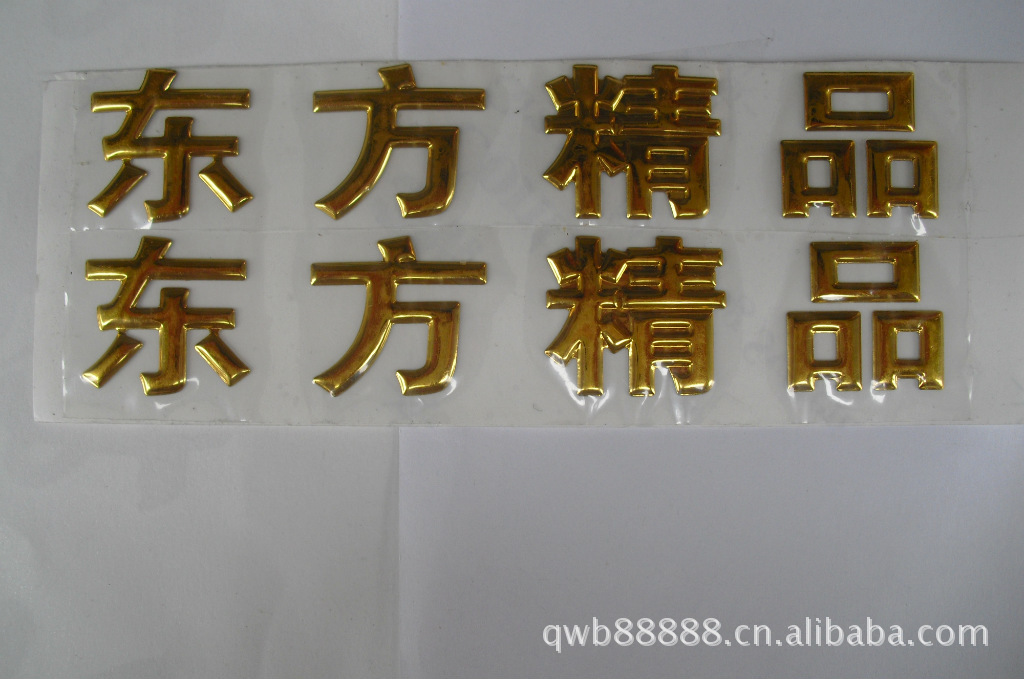 三維軟標,規格、大小、厚度、顏色均按客戶要求,客戶只要提供一份標準的圖稿,我公司即可開模、打樣、生產.這種標牌有明顯的立體感,克服了其它平面的標牌的不足.且柔韌性強,很不易折斷.表面覆透明保護膜,背面刷膠水,使用非常方便.可做金色、銀色、黑色、紅色等多種顏色,且長期不會變色