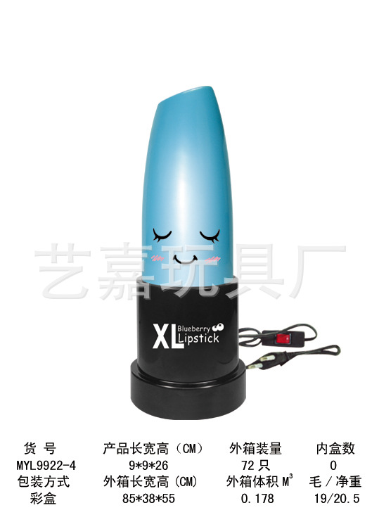 唇膏臺燈帶錢罐.橙紅.玟紅.淺藍.紫四款。