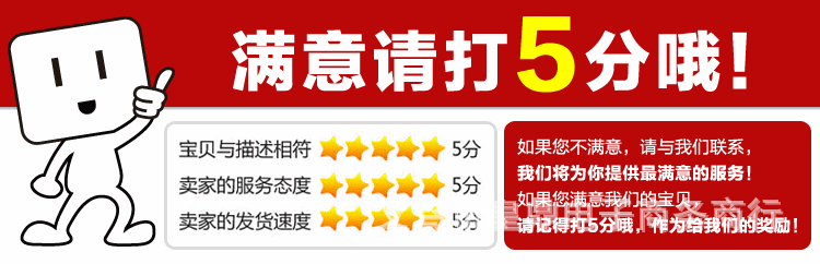 4、收到貨物后,請在時間檢查貨物的數量和質量,如有缺少或者發錯貨的,我們會退款或者補償,如商品有質量問題,請在時間和我們聯系,我們一定會妥善解決,商品如無質量問題,恕不退換,謝謝合作.