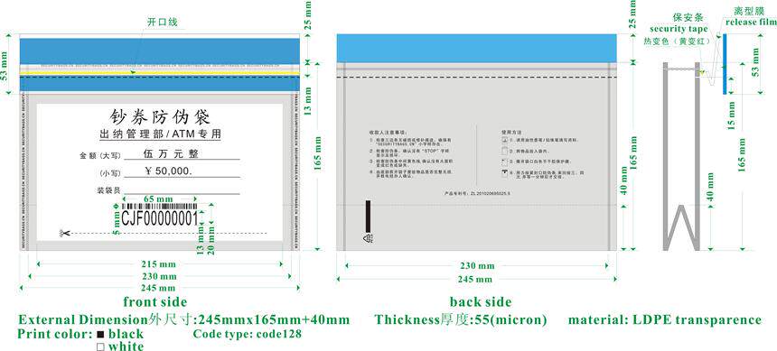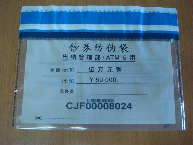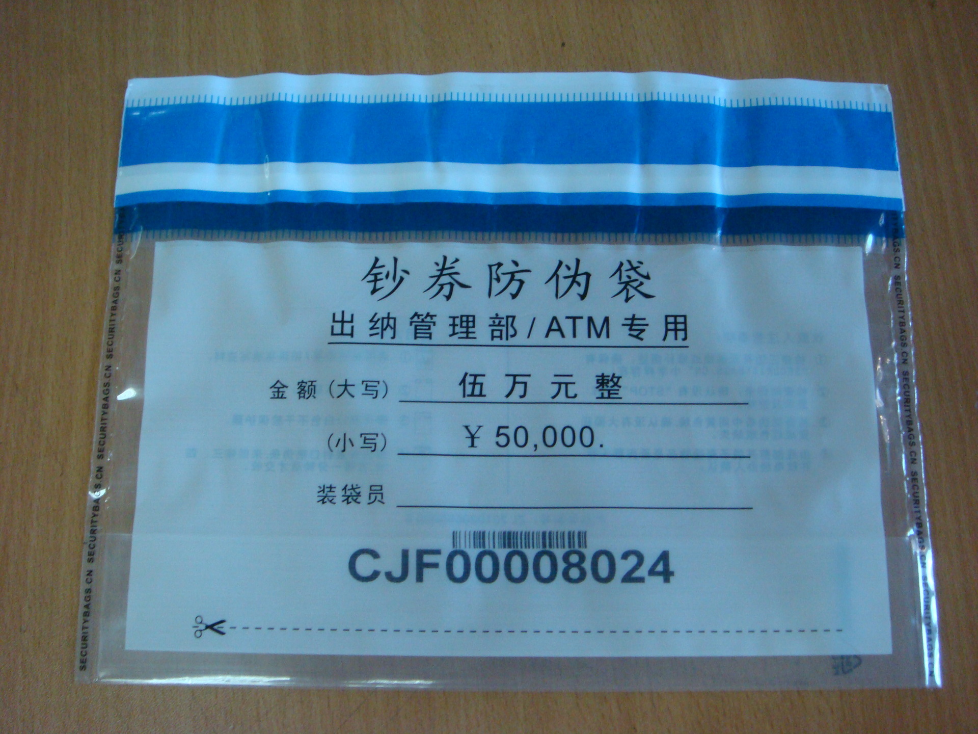 現金防偽袋, 票據防偽袋, 鈔券防偽包裝袋 , 295x395 30mm