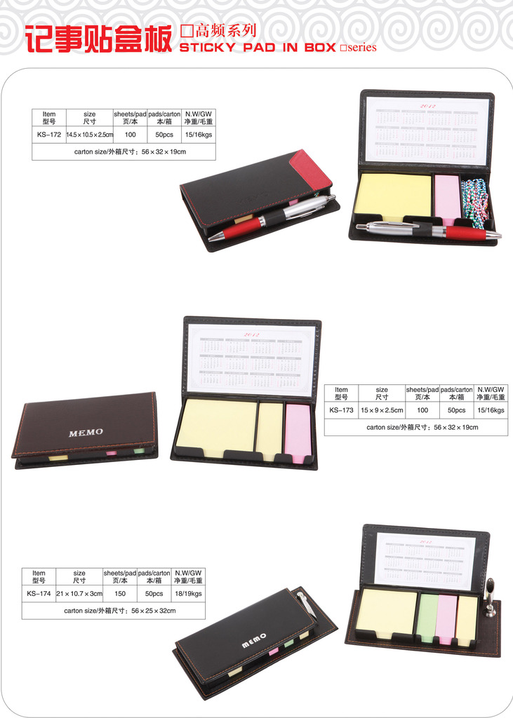 規格:148mm*88mm*21mm 內芯:記事貼 標志:MEMO 包裝:OPP膜,普通紙箱,200只/箱