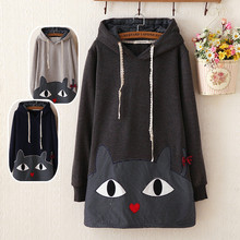 日式衛衣冬季新款 貼布卡通加厚抓絨連帽套頭衛衣 女式衛衣批發