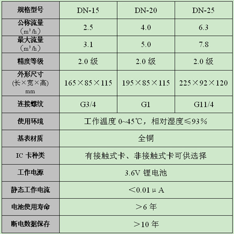 重慶智能水表詳細參數規格型號