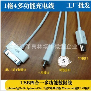 一拖四 miniusb充電數據線 蘋果iphone5s 三星4合1充電線 一出五
