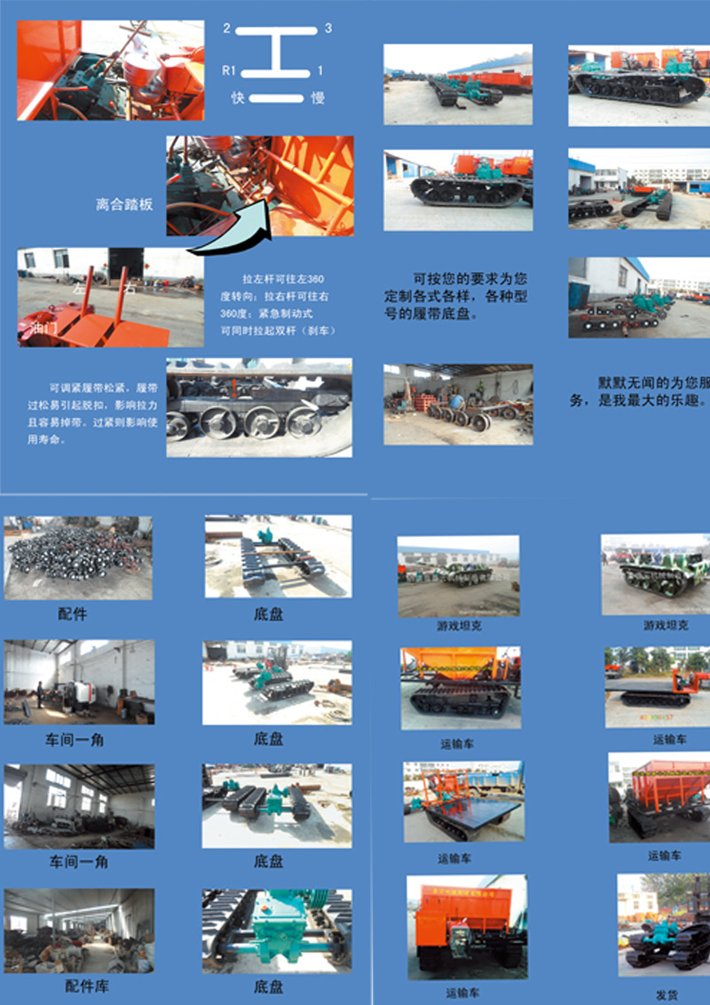 我們有廠和實體店鋪,從1998年到現在已有15個年頭了,我們主要是生產與批發各種履帶式收割機配件,同時生產履帶底盤,也可按客戶要求定做各種履帶式底盤,本廠產品銷往全國各地乃至全亞洲。
