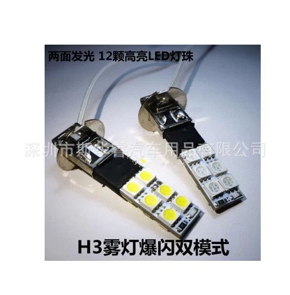 批發 汽車H3 H1T10-12珠爆閃燈泡前霧燈泡 紅藍爆閃雙模式LED霧燈