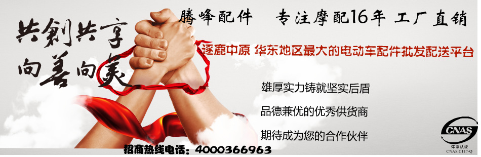 一.因為專業所以與眾不同!可以助你開店,助你批發,騰峰創業于1998年,主要從事電動車、摩托車維修的小店鋪,也是合肥成功的小店鋪,10幾個徒弟,修車排隊,業界聞名,2003年進駐大地汽摩城,正式成立合肥騰峰電動車配件商行,也是成功的經銷商,騰峰客戶聯盟成員已逾5000家。企業榮譽舉不勝舉。詳見公司榮譽欄。