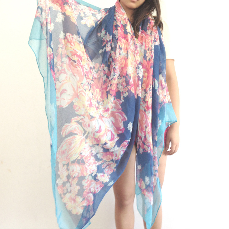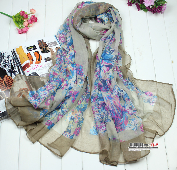 BLS136經典款巴厘紗圍巾 花卉圍巾 超長超大款