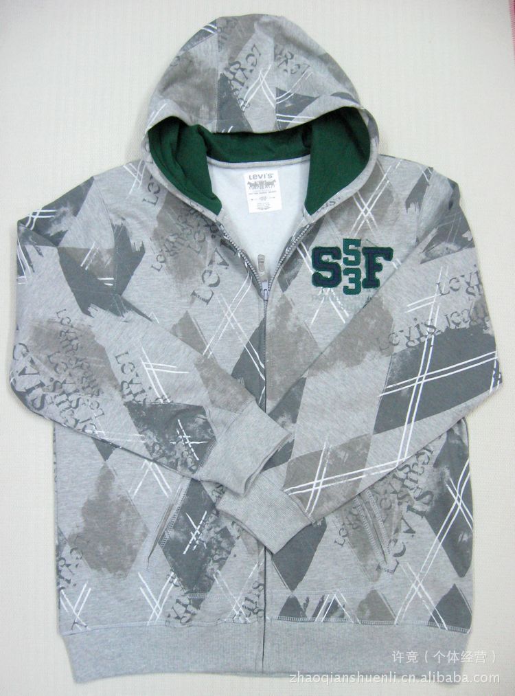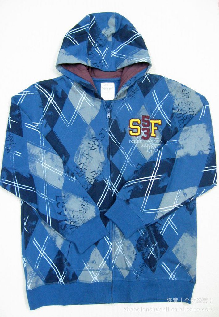 該款系里維斯外貿訂單尾單,純棉衛衣布制作,里面抓絨,做工講究,手感舒適。該款有藍和灰兩個顏色,左胸上部印字、繡標,衣服通體印幾何圖形,特別是間斷的條格印花,深淺的顏色搭配,凸顯出漫不經心和隨心所欲的休閑心境,適合8--16歲左右穿著,男女生均可。