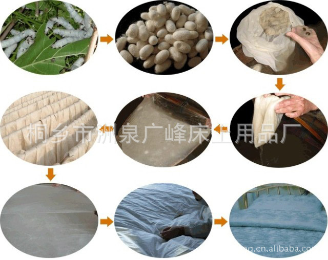 一般蠶絲被的使用說明都是說蠶絲被芯不可水洗、不可干洗、不可氯漂、不可熨燙,那總不能眼巴巴地讓它一直臟下去吧?所以,首先建議送干洗店專業處理,如果你想自己動手豐衣足食,那你可以用中性洗滌液(如洗蔬果用的洗滌靈)局部擦拭低溫烘干,蠶絲纖維耐酸不耐堿,應避免使用堿性太強的洗衣粉和肥皂洗滌,以防纖維受到損傷。肥皂還會與水中的鈣、鎂離子結合形成皂垢沉積在絲纖維上,使絲綢泛黃、粗硬。洗滌以手洗為佳,一般不宜機洗,更不可刷洗。洗滌溫度在30℃以下為宜,先用手將水中的洗滌劑攪勻后方可放入被芯,在水中浸泡時間不要超過五分鐘,用手輕柔搓洗、漂清,洗后不可絞擰以防絲縷位移、綢面發紕。由于蠶絲蛋白質分子在日光下會發生光化學反應引起泛黃和脆損,因此只能陰干,不宜曝曬。絲綢易起皺,洗后熨燙很有必要,后請您注意:熨燙時,不宜高溫、不宜直接熨燙,必須在上面加蓋一層濕布,適宜的溫度還能使晾干后粗硬的手感變得柔軟如初,但溫度超過130℃后會導致泛黃。熨燙時切忌噴水,以防產生水跡痕影響美觀。
