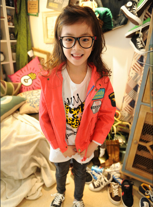 【誠信商家】休閑時尚糖果色連帽女童風衣童外套秋冬加厚款(圖)