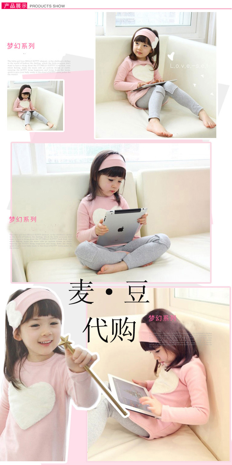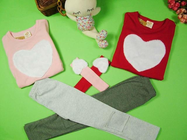 【廠家直銷】2013春裝韓版新款愛心款女童三件套裝上衣打底褲發箍