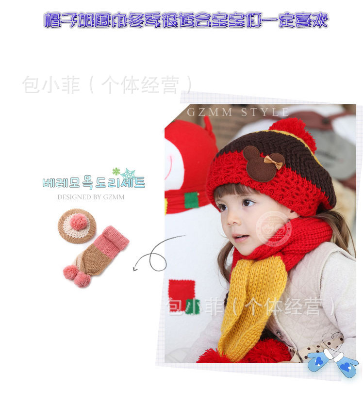 MZ794韓版帽 公主媽媽米奇貝雷帽 秋冬帽圍脖針織帽圍巾套裝 批發