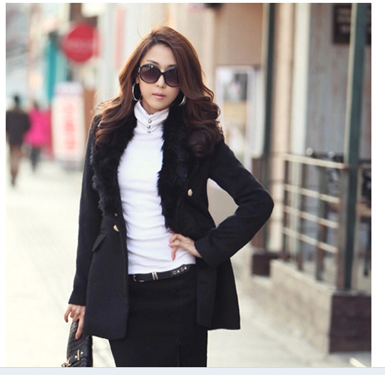 歐洲站女裝批發代理2014秋冬新款BBZ015粗花呢雙排扣大衣微信代發