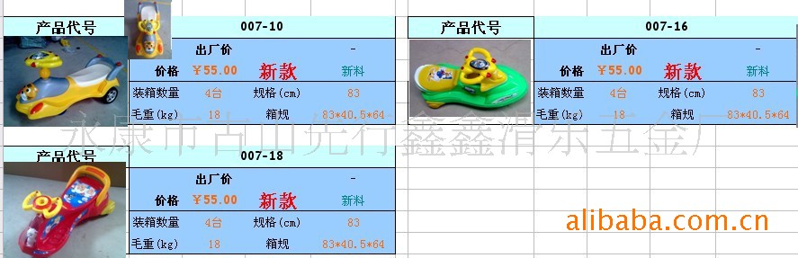 先行鑫鑫滑樂五金廠是一家集生產、貿易和服務為一體的民營企業。本廠坐落于中國五金城--浙江永康,占地面積8000平方米。主要致力于開發、生產和銷售滑板車、木滑板、活力板 .輪滑 .擺擺樂 兒童三輪車.蛙式車.嬰兒床.兒童餐桌秋千等各類運動健身器材?,F日生產能力達3000臺