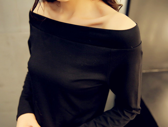 非常修身顯瘦,性感的一字領設計,簡約大方,