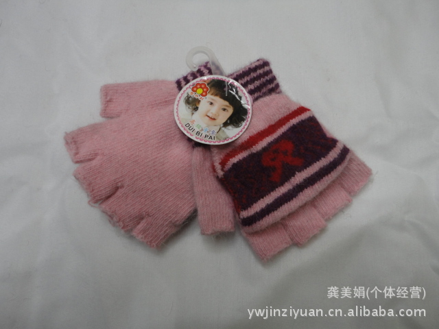 韓版時尚兔毛提花小孩半指翻蓋手套 針織手套 魔術手套