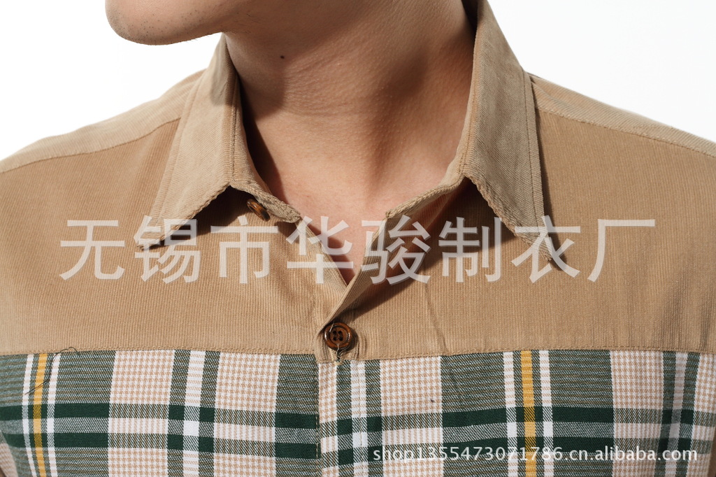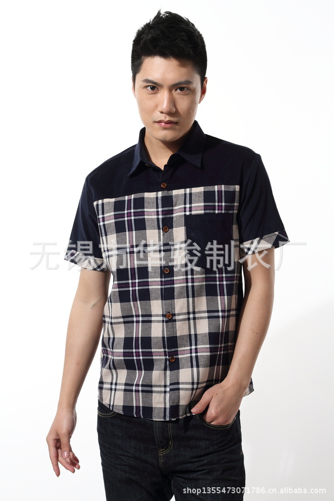 2013精品夏季男裝燈芯絨襯衫男短袖男士格子襯衫韓版修身襯衣