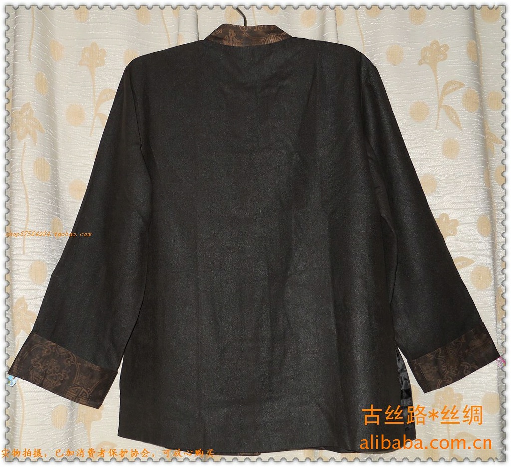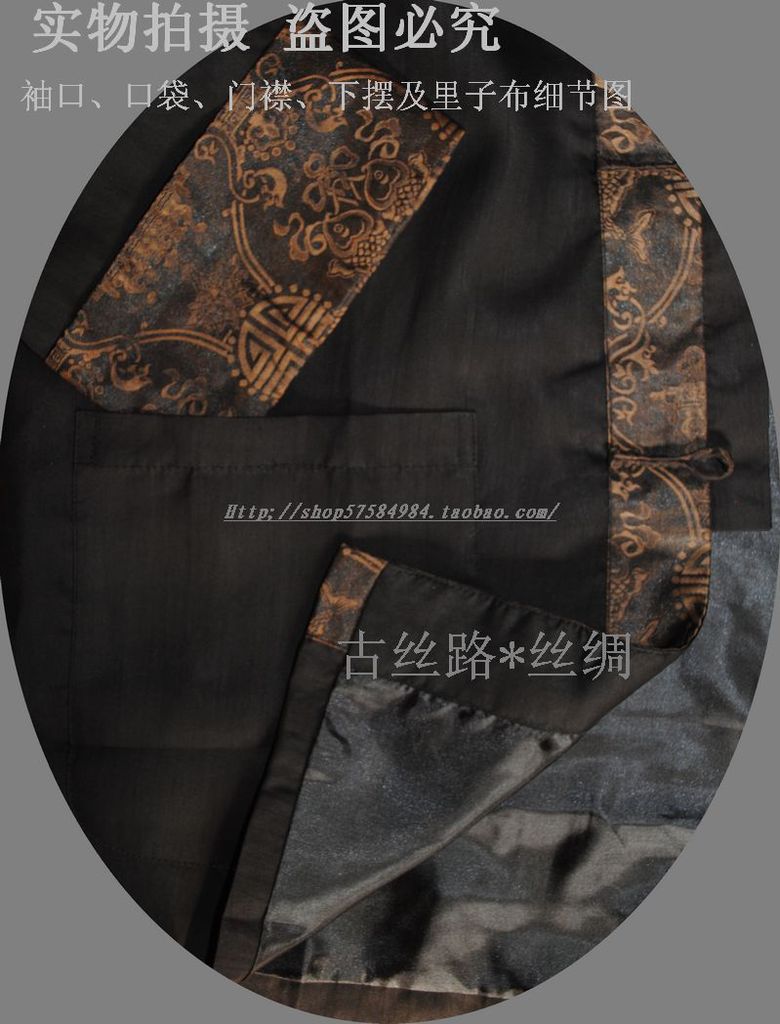 【面布】:真絲香云紗莨綢(100% SILK)---黑色鑲門襟唐裝(外套布料真絲香云紗--每批布料都會有點不同,隨機發貨)