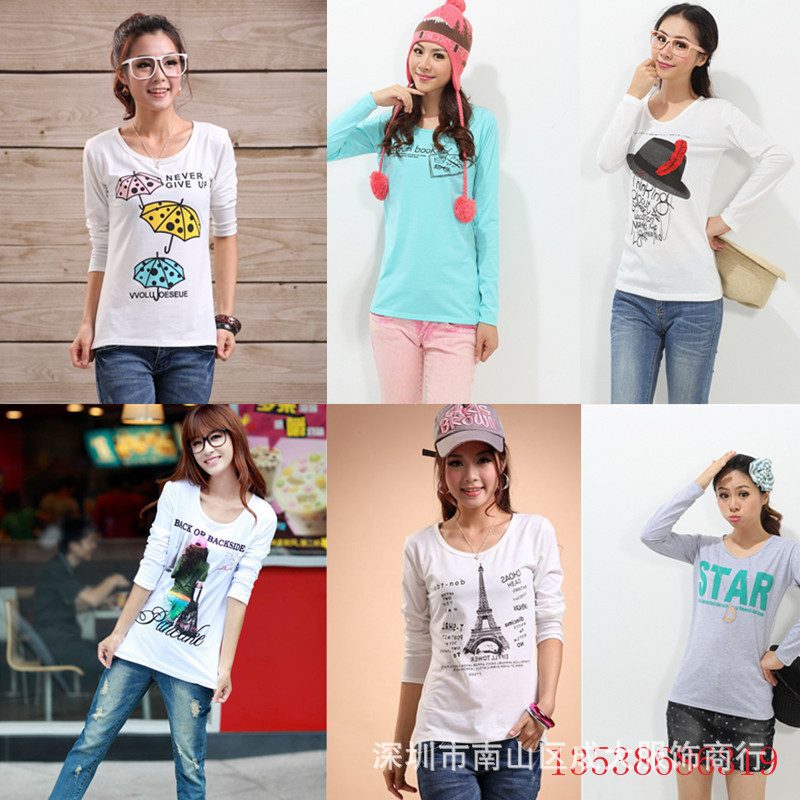 廠家直銷庫存T恤批發 外貿女裝長袖T恤 特價地攤貨源女式T恤