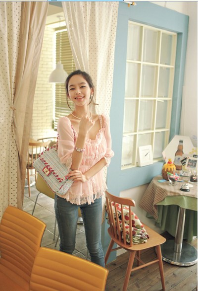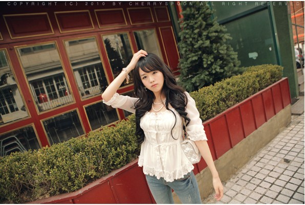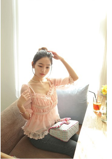 當夏人氣爆款!時尚蕾絲花邊 韓版雪紡衫 甜美教主超愛