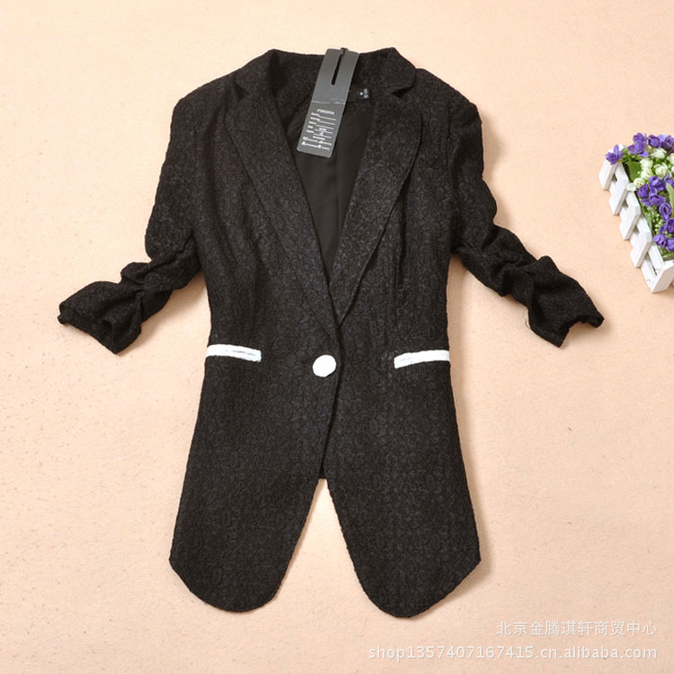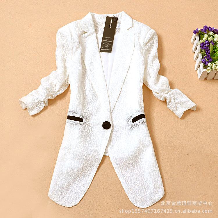 2013新款夏裝歐美皺皺袖鏤空小西裝 蕾絲外套 修身顯瘦小外套