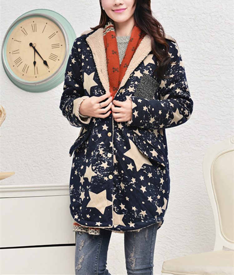 文藝復古大碼女裝保暖加絨棉衣女針織開衫棉襖棉服外套胖人MM冬裝