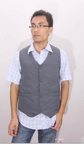 防水面料,內為保暖仿絲棉精制而成,夾層配有遠紅外發熱體,局部發熱,使用鋰電池供熱??拱櫡浪?、抗拉力強,衣服可洗滌,適合肩周炎、胃炎、梗椎、頸椎病、腰病等癥及戶外工作人員、冬季未供暖地區人群取暖、護理保[jian]的使用。