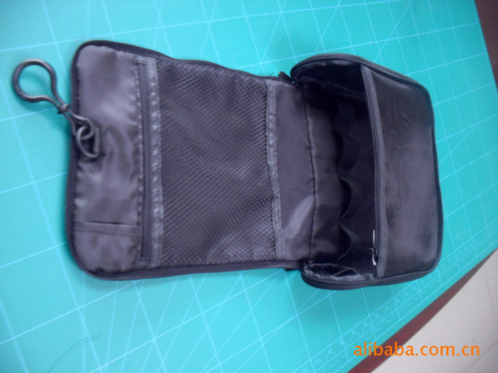 化妝掛包主料為古制尼龍,里袋有210普通里布再加六角網以及6分拉扣,6分橡筋,6分尼龍包邊帶,11號骨條。價格為FOB15元一個