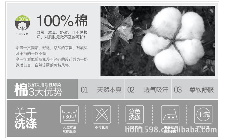 特 性:吸汗透氣、容易清洗、不易起球、手 感柔軟、采用環保印染工藝,色牢度高、不易掉色
